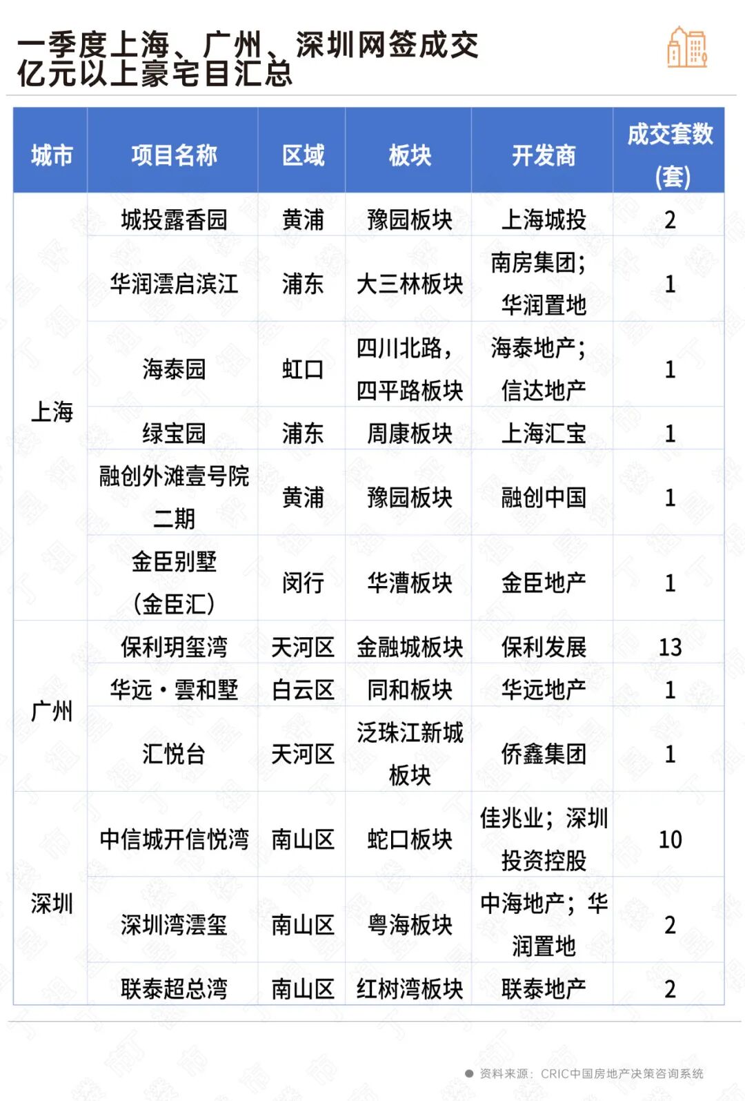 今年一季度,北上广深合计成交的36套一手过亿豪宅中,广州、深圳包揽了近八成。