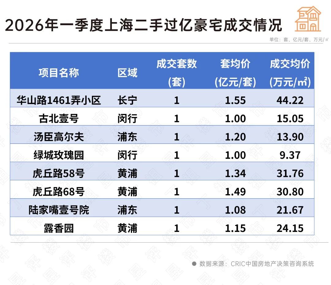 从二手过亿豪宅成交来看,一季度北上广深共成交9套,比去年同期多了1套,环比2025年四季度少了6套。