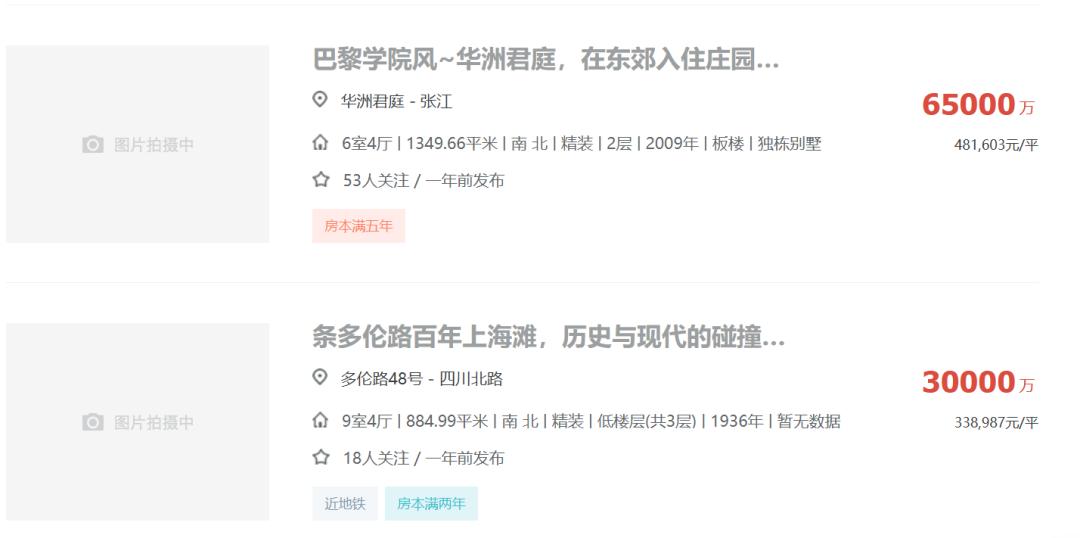 上海过亿豪宅共有38套挂牌,最贵的一套独栋别墅,挂牌价6.5亿,还有一套老洋房挂牌价3亿元,此外还有汤臣一品、古北壹号、翠湖天地等明星楼盘。不过值得注意的是,今年1月末我们曾统计过上海过亿豪宅挂牌情况,上述两套过亿豪宅也在其列,目前尚未售出,且两个房源均为一年前挂牌,从挂牌到成交整体周期比较长。
