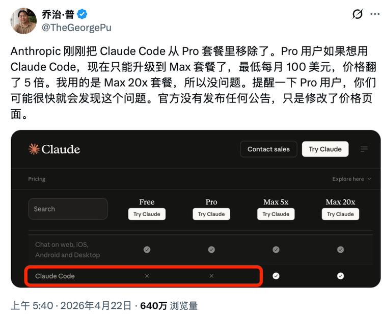 对此最敏感的开发者和企业用户当然也发现了这一点。但他们走不掉——不只是因为 Claude 的模型能力暂时还无可替代,更因为上下文、使用习惯、已经跑通的工作流全都压在这里。换掉 Claude 的代价,往往比继续掏钱更高。