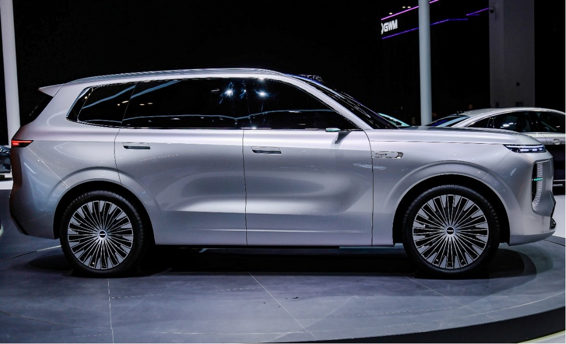 家越07概念车从气场到细节,传递稳健和家庭温暖。近5米长的车身、高达1.2米的车头,搭配舒展有力的车顶线条、厚实挺立的D柱以及体块感强烈的形面语言,且正面及尾部皆呈现高而稳健的正梯形轮廓,呈现沉稳有力的整车形象。