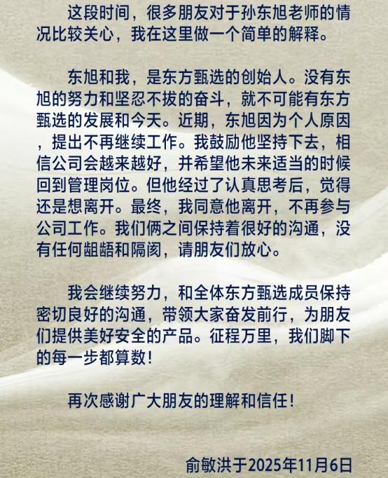 东方甄选爆发离职潮,俞敏洪回应一切