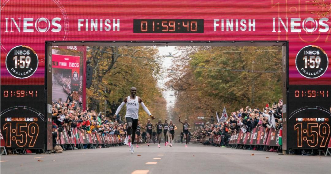 这场“破2”挑战赛全名为INEOS 159 Challenge,即英力士159挑战。当年即将年满35岁的基普乔格,在配速团队、激光引导车和理想化赛道环境的帮助下,以1小时59分40秒冲过终点,成为人类历史上首位跑进两小时以内完成马拉松距离的跑者。