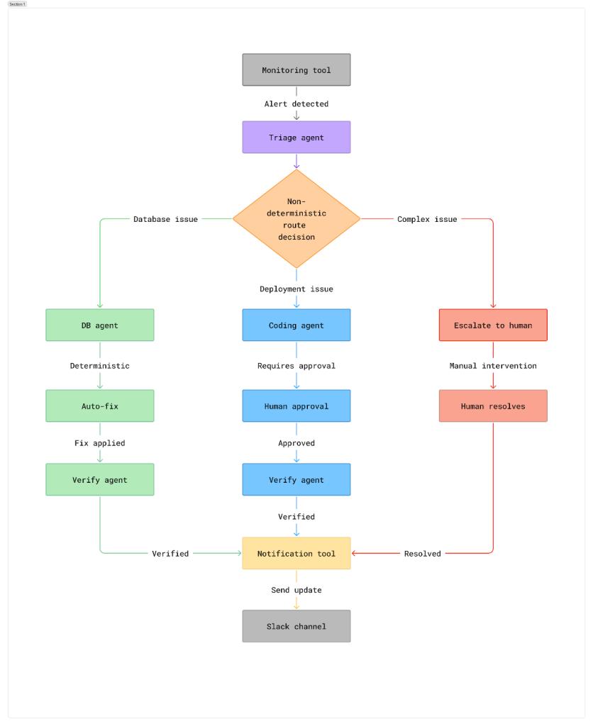 本质上,事件响应工作流是非确定性的。根本原因可能是糟糕的部署、数据库问题、配置错误或没有人见过的东西。智能体必须调查并决定接下来会发生什么。