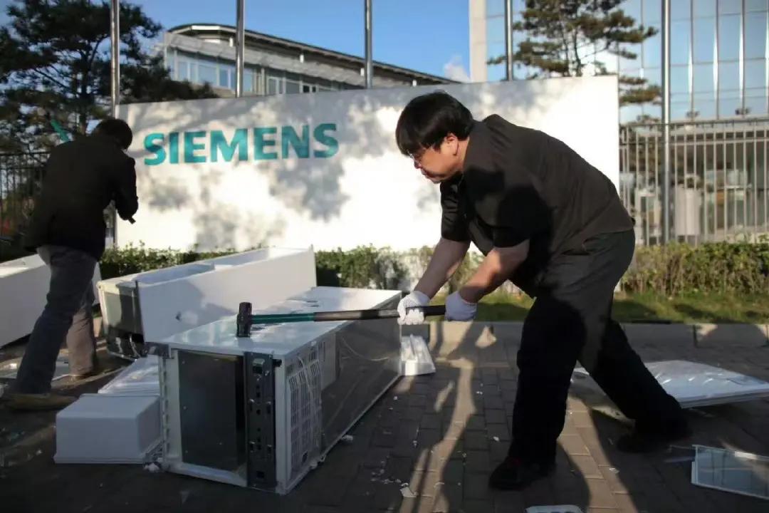2011年11月20日,罗永浩带着西门子冰箱,跑到西门子北京总部门前,抡起铁锤直接砸烂。现场标语写着“温和要求:承认并解决冰箱门问题”,但西门子当天依旧嘴硬,说不是质量问题。