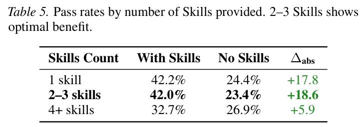 2–3 个 Skill 协同效果最好(来源,SkillsBench 论文 Table 5)