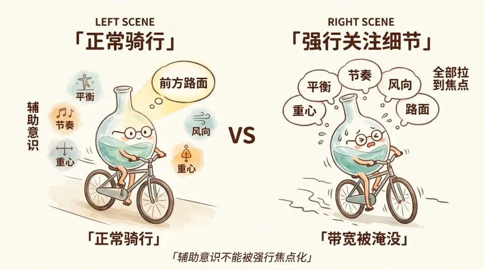 你没有在「想」这些事情,但身体在同时整合所有信号来维持骑行。