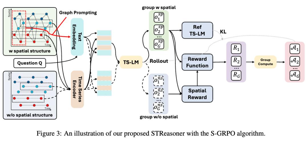 在时空推理任务中,模型需要同时处理三类信息:时间序列、空间结构以及自然语言问题。因此,一个核心问题是:如何让语言模型既「看懂时序数值」,又「理解图结构」,还能完成推理?