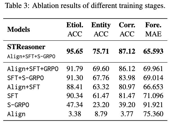 首先,STReasoner在真实数据上的表现不仅没有下降,反而显著领先,这说明模型学到的不是数据分布本身,而是可迁移的时空推理能力。