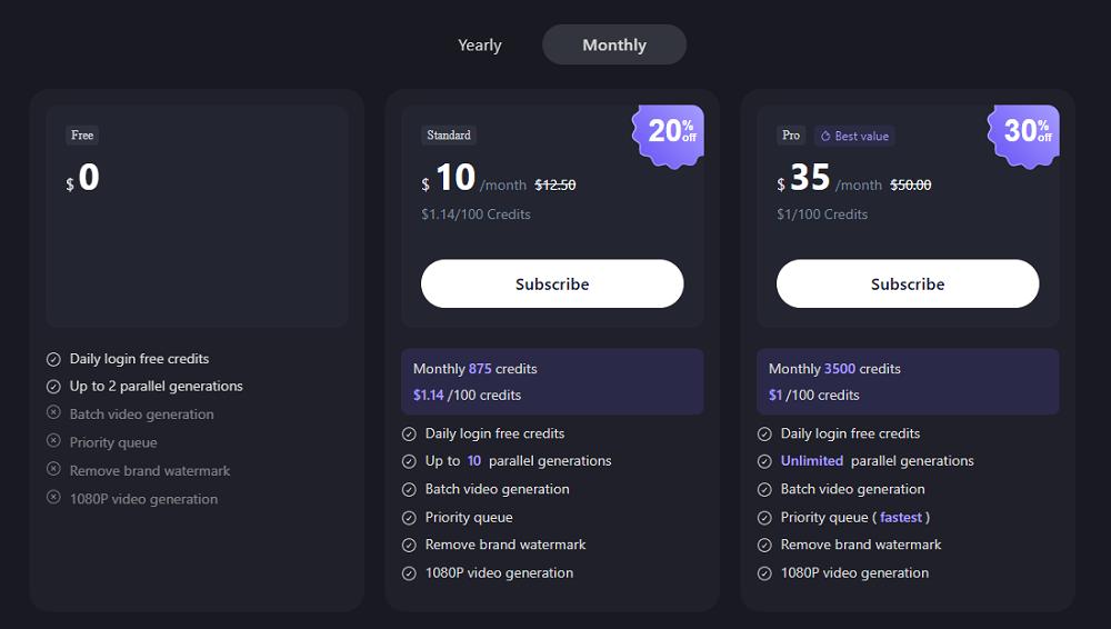 官网显示,HappyHorse 1.0分辨率最高支持1080p,最多可同时生成4个视频,生成720P和1080P视频的刊例价分别为0.9元/s及1.6元/s,Pro套餐包月价格叠加限时折扣后为0.44元/s和0.78元/s。