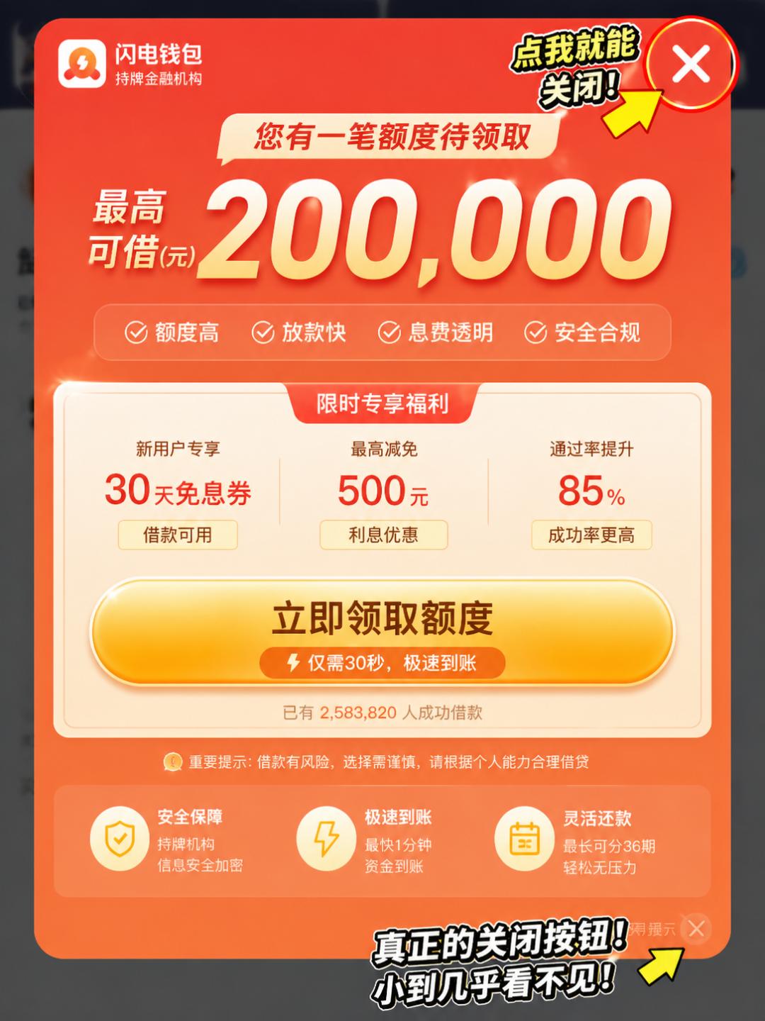 新规明确说了,以后遇到弹窗广告,那个关闭的“X”必须得是真正能关掉页面的“X”,绝对不能是那种拿显微镜都找不着的纳米级按钮,更不能是你点一下关闭,它反手就给你下载个全家桶的流氓按键。 ”