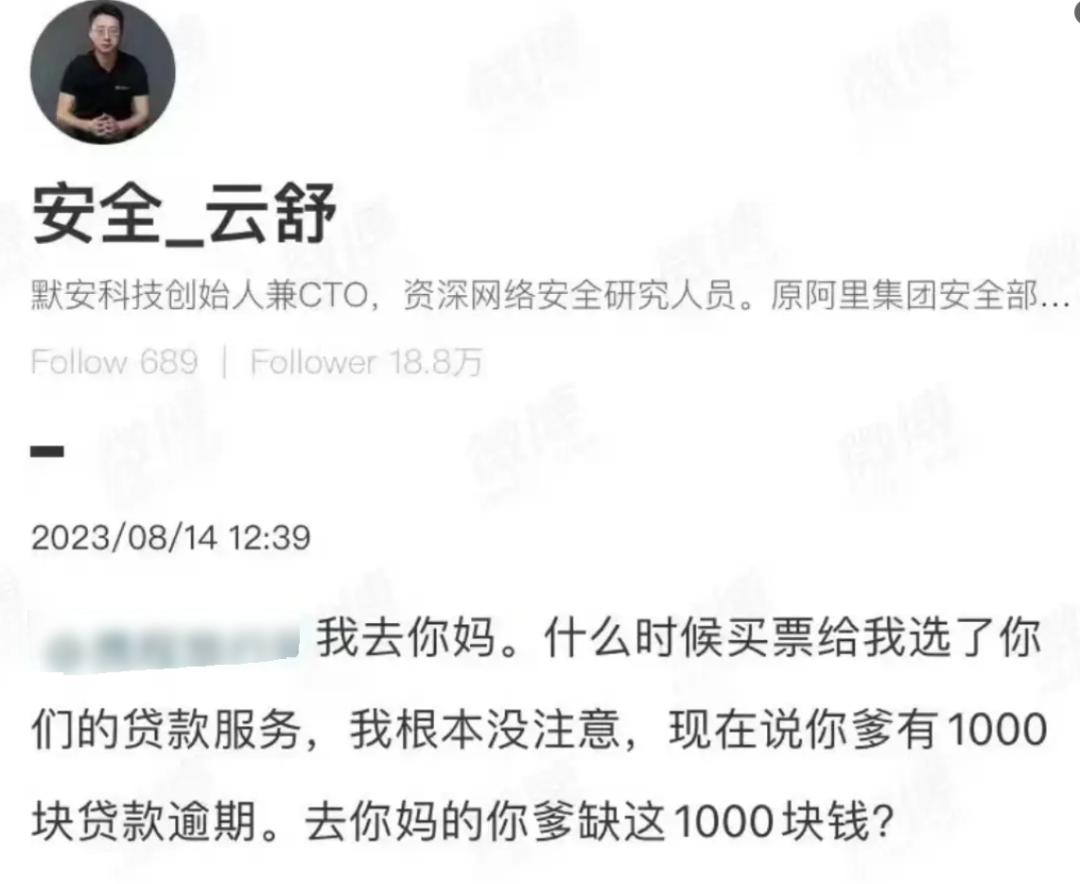 这还真怪不了我们粗心大意,前两年,就连曾在阿里专攻网络安全的高管,都专门炮轰过自己被诱导开通网贷的经历。