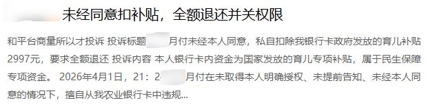 有的宝妈,国家刚发到手的育儿津贴,就被某平台直接拿去冲账了;