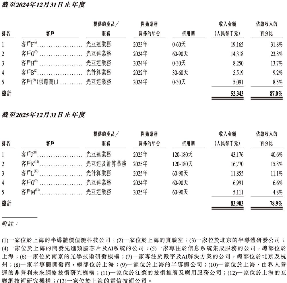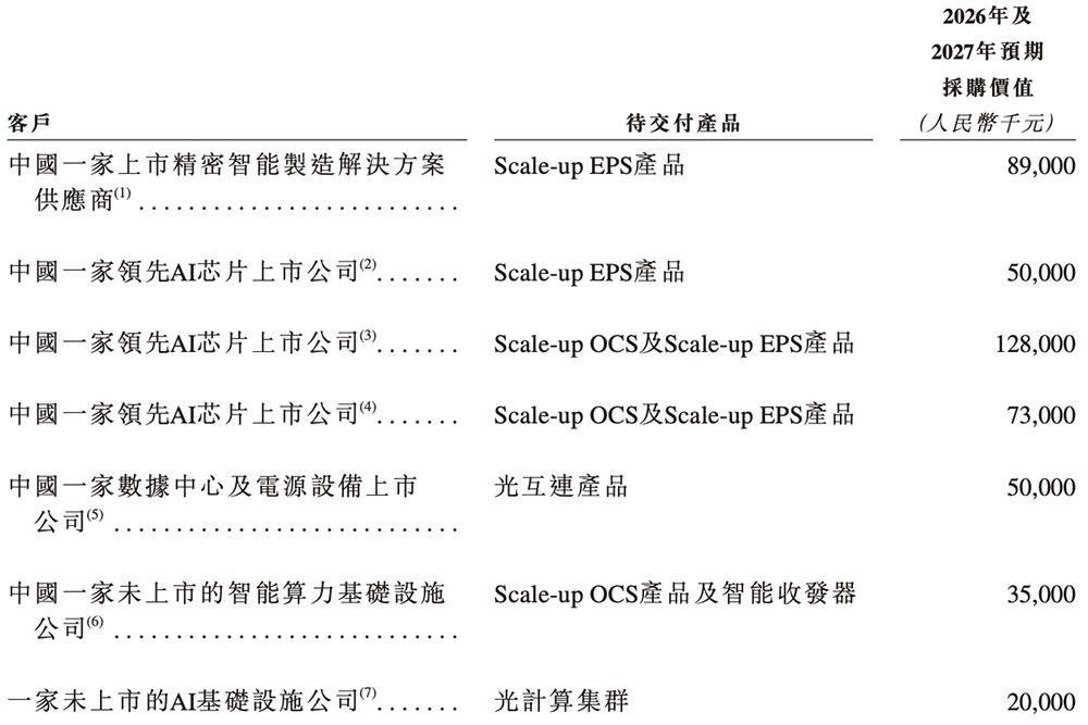 此外,曦智科技已与若干知名客户就购买光计算产品及光互连解决方案签订多份框架协议及意向书,大部分采购金额预期将于2026年及2027年实现。这些客户中,至少5家为上市公司,其余均为各自行业的龙头企业。