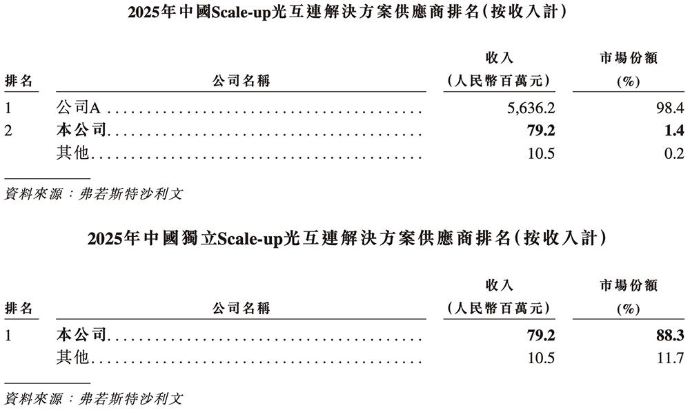 其中,按2025年收入计,曦智科技是中国境内唯一实现大规模商业化的独立Scale-up光互连解决方案供应商,排名第二,在独立Scale-up光互连解决方案供应商中排名第一,产生收入7920万元,占市场份额约88.3%。