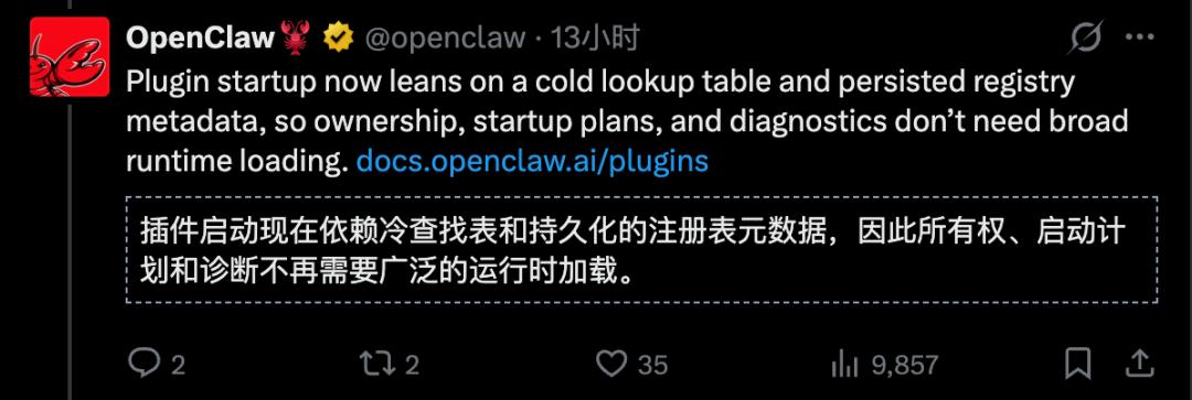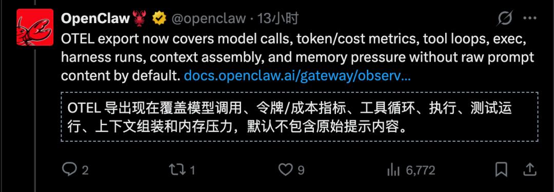 OpenClaw最新版本一口气塞进13个语音提供商、OTEL全链路可观测性和插件冷启动优化,官方口号只有一句:Less mystery, more machinery。