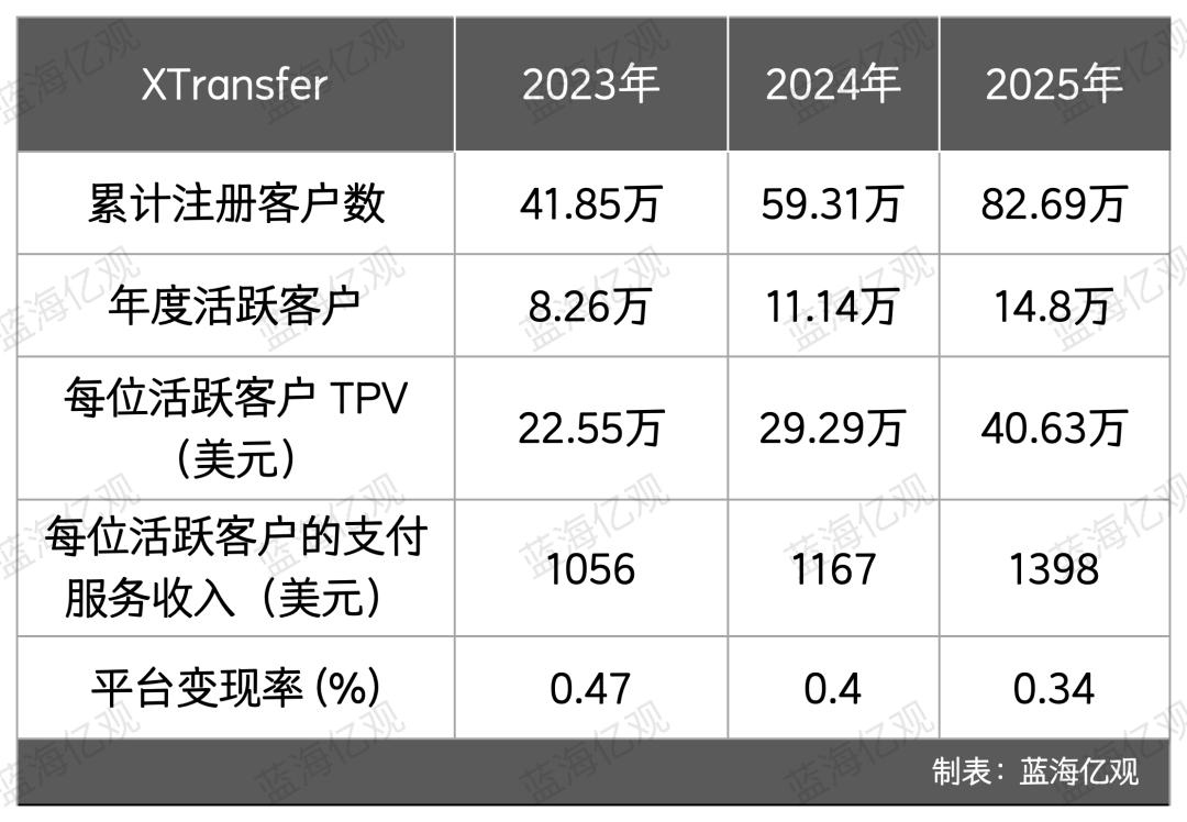 近年来,XTransfer增长很快,其总支付交易额(TPV,Total Payment Volume),从2023年的186.33亿美元,跃升到2025年的605.16亿美元,累计注册用户也在2025年达到了82.69万。