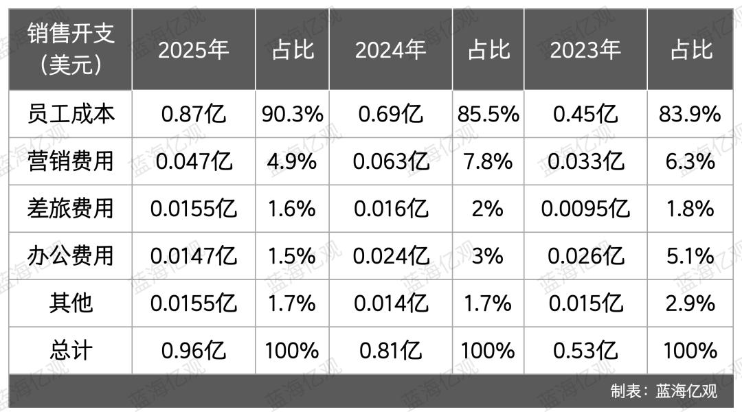 2023年至2025年,XTransfer的营业收入,分别为1.15亿美元、1.62亿美元和2.48亿美元。这些收入中的很大一部分,被投入到销售之中。