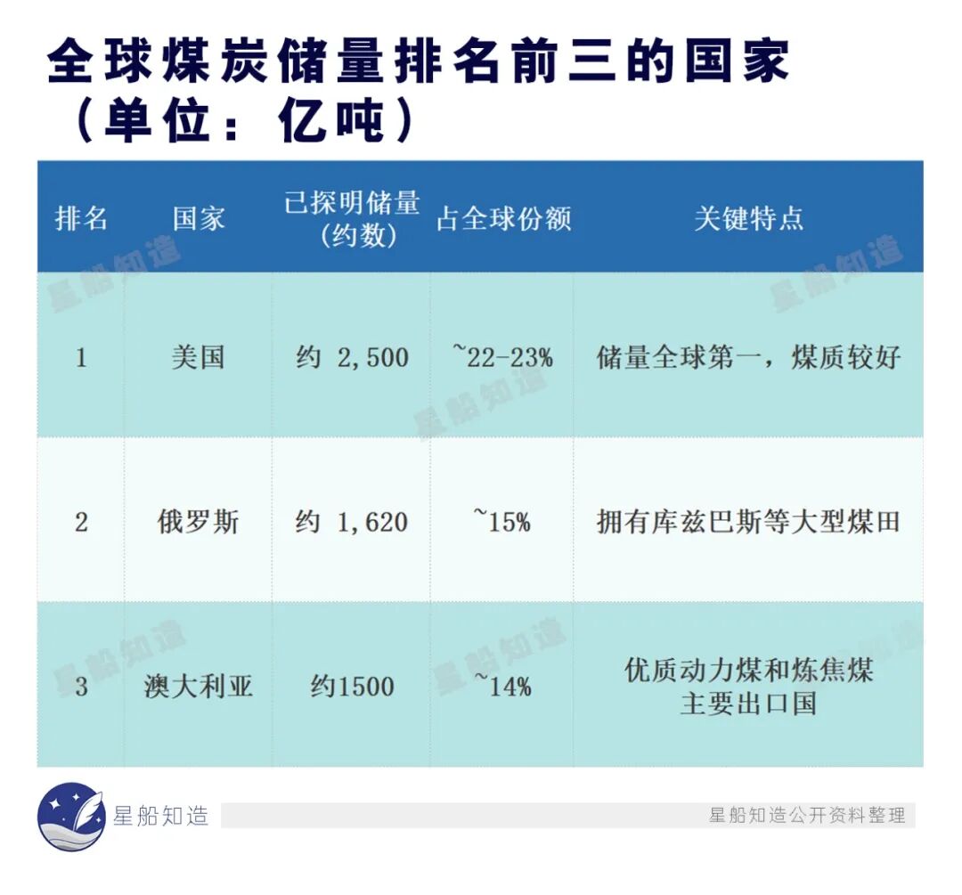 中国煤炭已探明储量在1,390 - 1,730亿吨,位列全球第四,远少于美国约2,500亿吨。