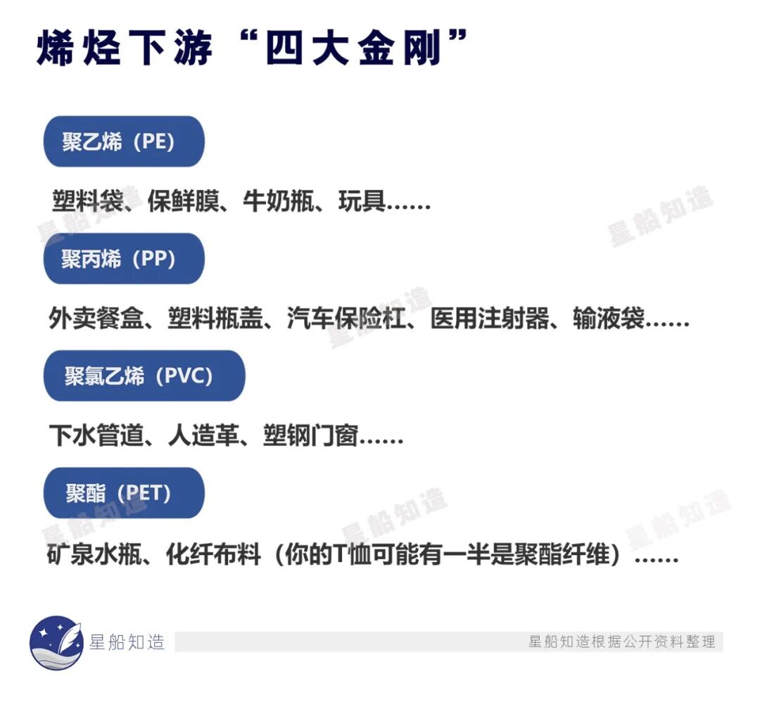 石脑油是石油产品之一,普通消费者几乎不会直接接触这种无色液体。但经高温裂解后,这种石油产品会变成乙烯(烯烃的一种)等基础化工原料,这些原料再往下游走,就进入了日常生活的方方面面。点击下图可放大👇