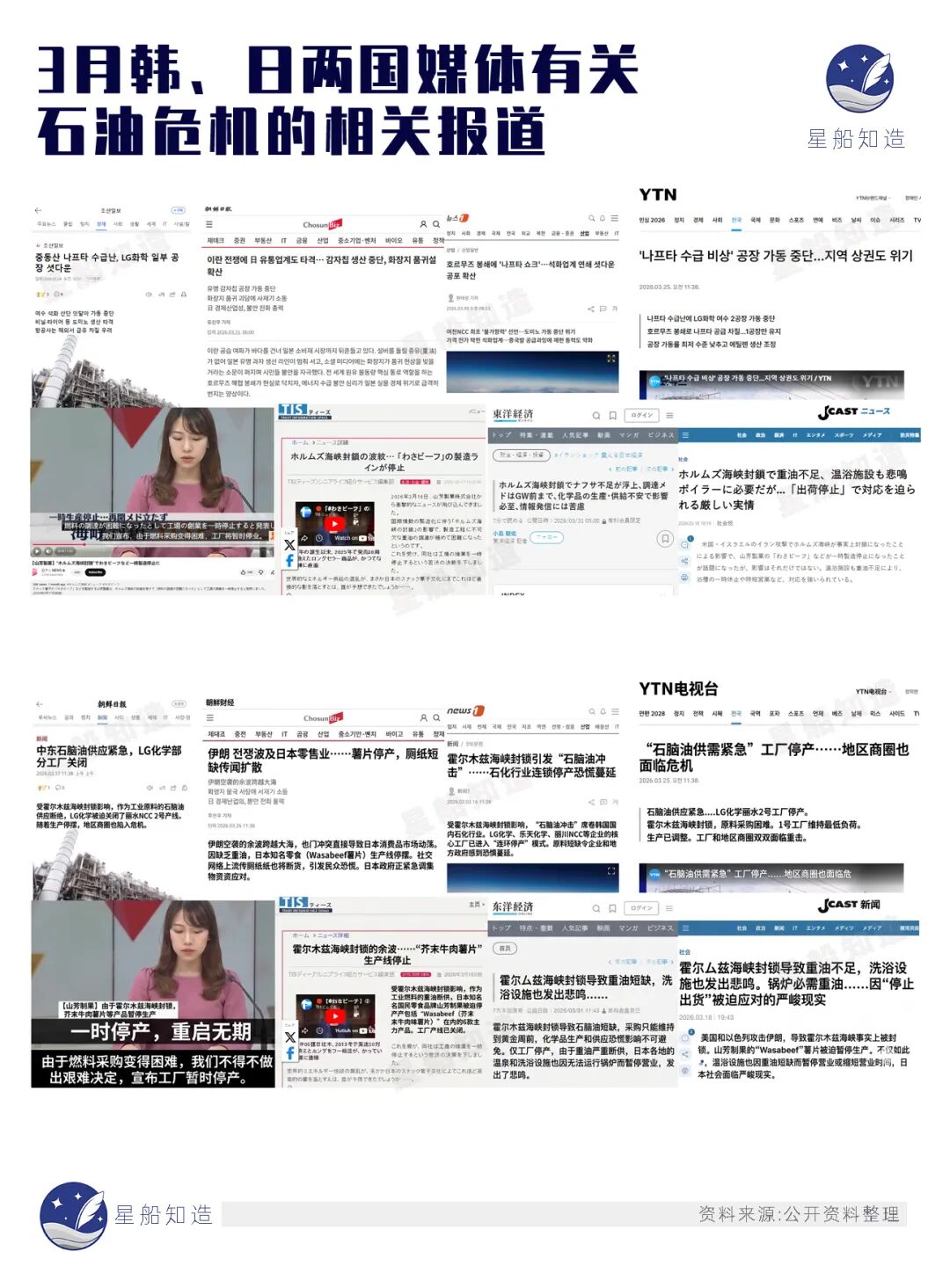 《星船知造》梳理了3月日媒、韩媒关于石油危机的报道,点击下图可放大👇
