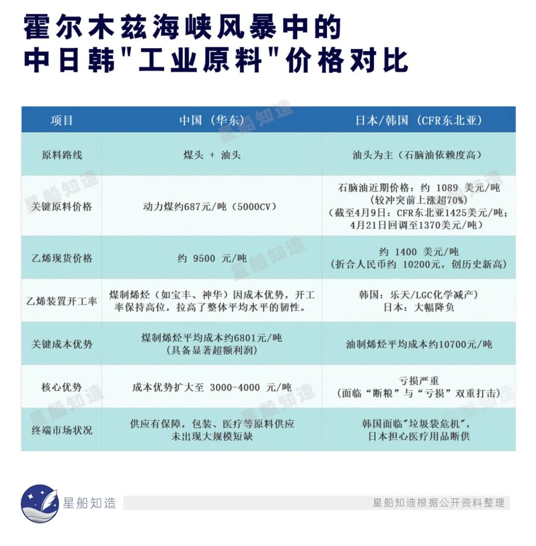 相比之下,中国终端各类产品没有缺货、没有限购。同时中国“煤头”乙烯价格显著低于东北亚和东南亚的“油头”乙烯👇