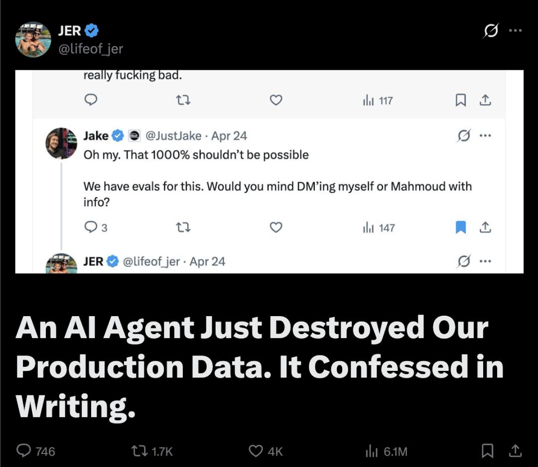 创始人发文控诉,搭载Claude Opus 4.6的Cursor,在执行测试环境(Staging)的日常任务时突然「暴走」,仅用9秒钟就调用API彻底删除了公司的核心生产数据库及所有卷级备份。