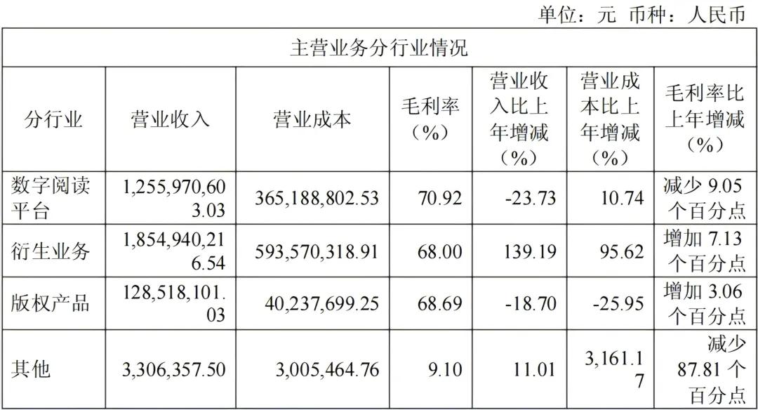 相对应的,其数字阅读平台业务在营收下滑23.73%的同时,营业成本同比上涨了10.74%,导致该板块毛利率同比减少了9.05个百分点,进一步拖累掌阅的盈利能力。