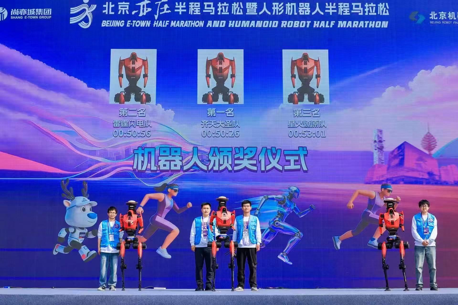 值得注意的是,去年的机器人马拉松比赛中,冠军“天工”的成绩是2小时40分——而“闪电”们完赛时间不仅缩短到原来的三分之一,甚至还超越了人类男性约57分20秒的世界纪录,这也是机器人第一次打破人类半马纪录。