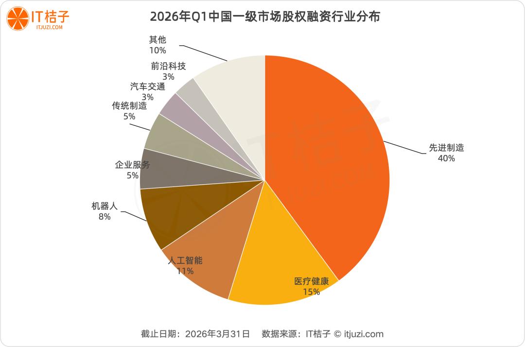根据IT桔子一季度创投数据显示,2026年Q1共发生2865起融资事件,环比增长2.5%,同比增长高达52%;交易金额达2560亿元人民币,环比增长11.4%,同比增长48%。