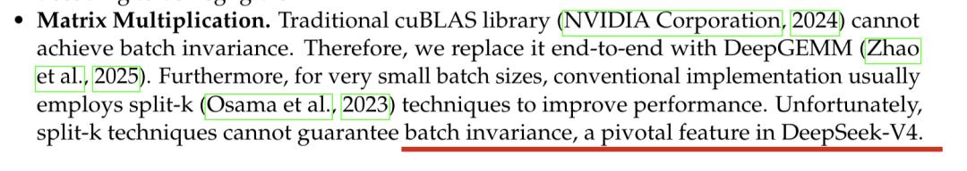 常看常新的那种——一个引起关注的新发现是,V4在工程上为了保留核心设计「batch invariance」,都有点不计代价了。