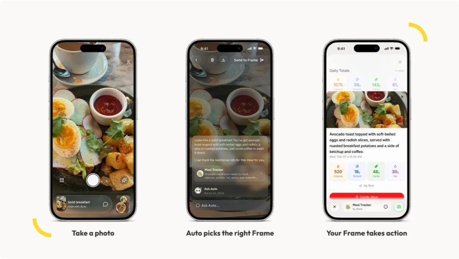 公司简介:Auto 是一款AI 相机。它可以将你的照片转化为“Frames”——一种能在日常生活中为你提供帮助的轻量级应用。Frames 让你的相机变得智能:它可以识别食物热量、辅助穿搭建议、照料植物、拆分账单、提供旅行建议、记录你的目标,以及完成你能想到的各种任务。