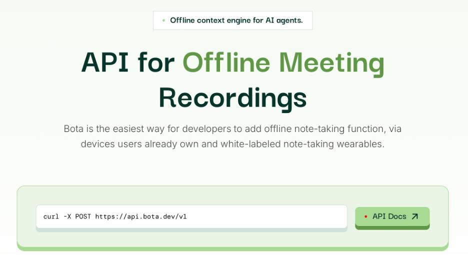 公司简介:Bota 致力于构建面向现实世界上下文的AI agent 基础设施,当前以语音数据作为切入点,打造连接AI agent 与真实环境信息的底层能力层。产品上线5 周内公司达成超过70 万美元的contracted ARR,客户覆盖销售、医疗、法律、金融及生产力工具等多个领域的头部AI agent 公司。