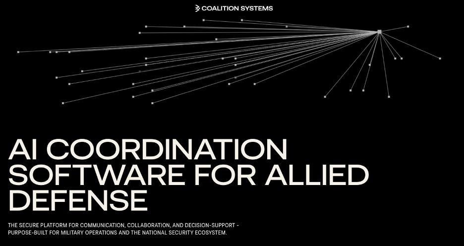 公司简介:公司正在为国家安全生态系统构建统一的协调层。当前国防软件栈高度碎片化,军事单位、情报机构、政府机关及关键基础设施部门仍依赖Signal、WhatsApp 和Google Sheets 进行跨机构协作,缺乏专用软件实现互联互通。Coalition OS 正是为此而生。