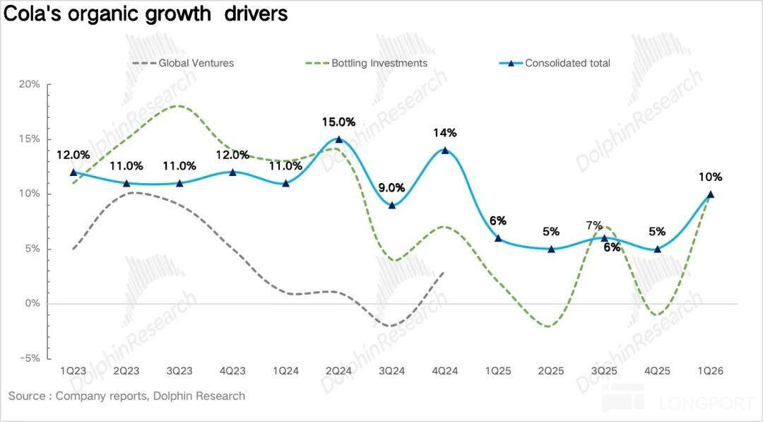 但从一季度的实际结果来看,可口可乐凭借强大的渠道掌控力和价格传导能力,平稳消化了这一政策冲击。装瓶商合作伙伴 Arca Continental 和 Coca-Cola FEMSA 均已在现代渠道完成了提价动作。