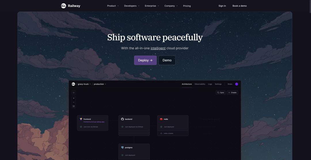 Railway 一个云服务平台,可以帮助用户构建、发布和监控应用程序,无需专门的平台工程师进行操作,轻松部署和扩展应用,它类似于 Vercel 等平台。
