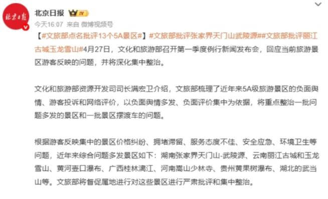 五一前,我注意到文旅部集中点名批评了一大批5A景区。