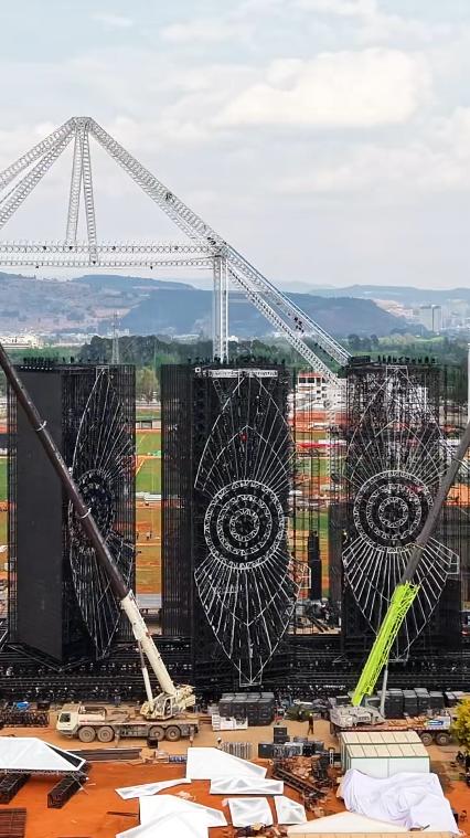 说是延期,但那座72米高的舞台——2000吨钢材、6000盏灯、9000平米巨幕——已经开始拆除。