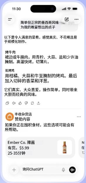 AI的“中立”回答,正被悄悄植入广告。源于:OpenAI官方广告案例