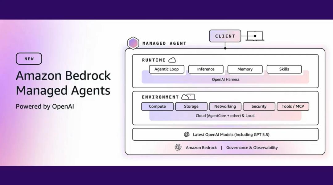 Bedrock Managed Agents的定位,就是把OpenAI前沿模型和Agent能力,与亚马逊云科技全球基础设施、安全和服务生态结合起来,让客户更快部署生产级OpenAI Agent,而不是把大量时间花在搭基础设施上。