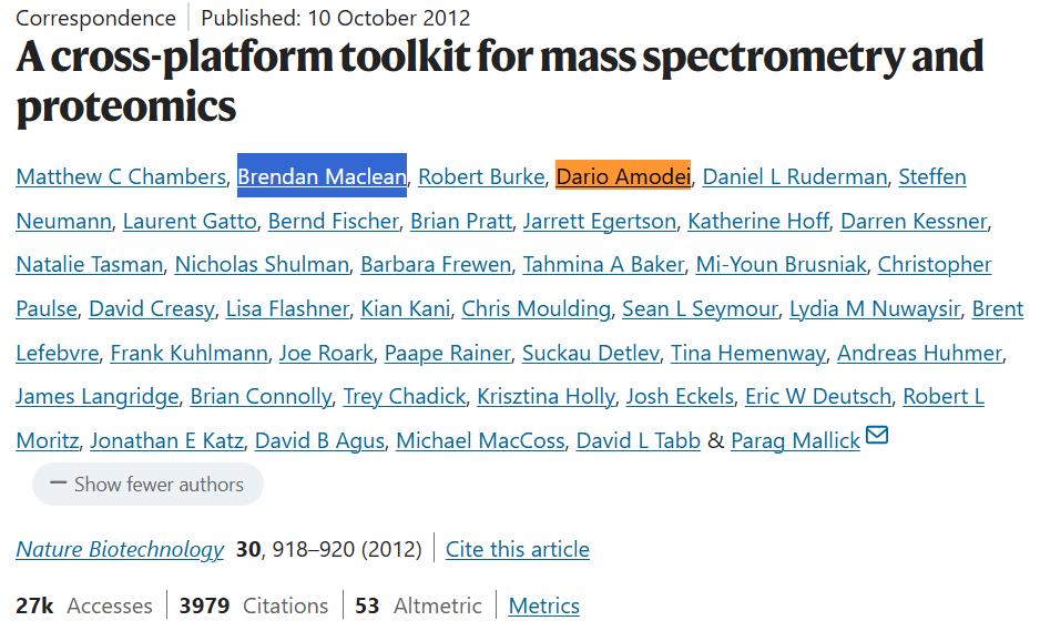 Anthropic联合创始人Dario Amodei曾经是MacCoss Lab的成员,2012年还和Brendan合著过一篇Nature Biotechnology的论文。