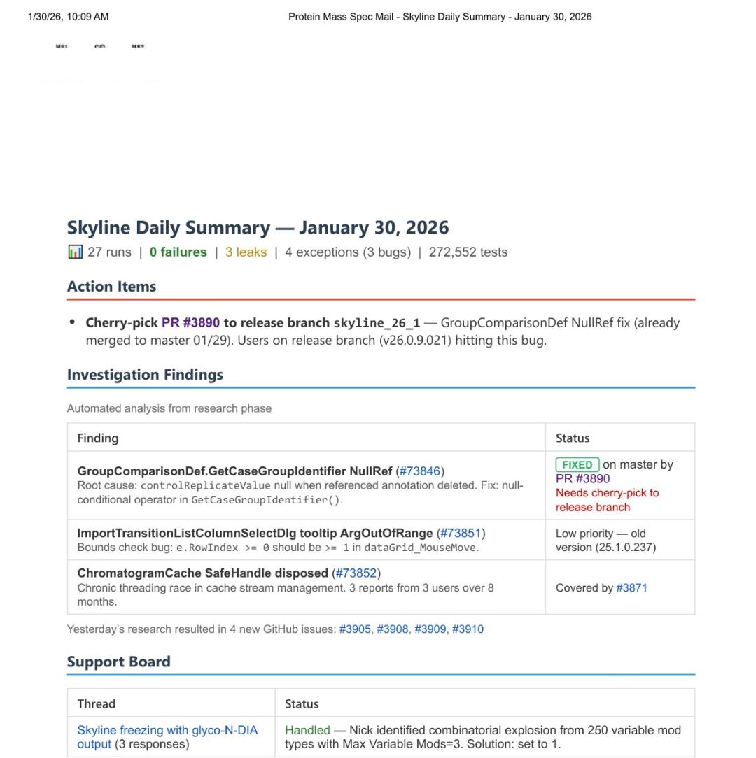 每天早上Brendan坐下来开始工作之前,Claude自动生成的日报已经躺在收件箱里了,汇总夜间测试失败、异常和未解决的工单。