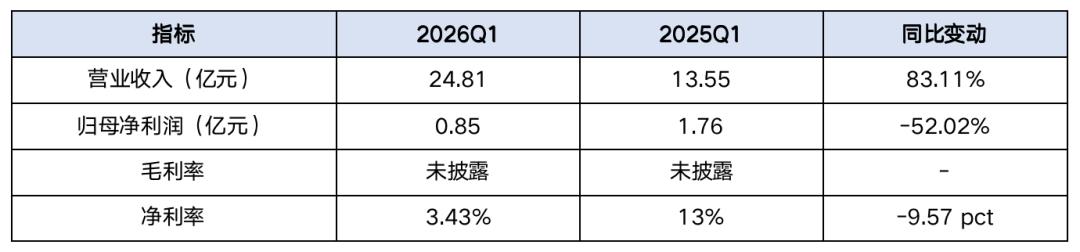 进入2026年,这一趋势并未扭转。影石创新披露的一季报显示,营收达24.81亿元,同比增长83.11%;归母净利润8462.02万元,同比下滑52.02%,遭遇腰斩,净利率更是跌去了近十个百分点。