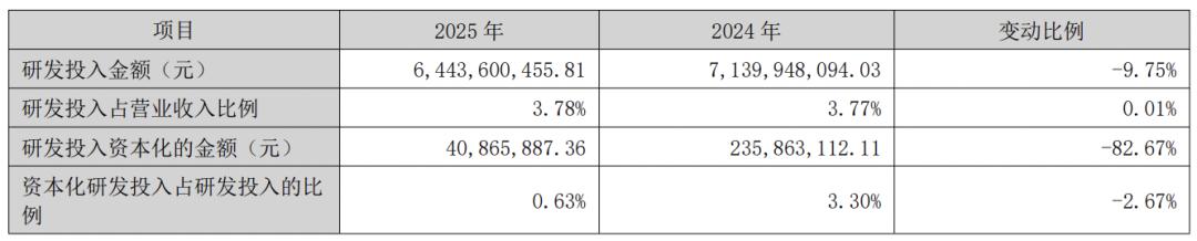 研发与现金流层面,格力2025年研发投入64.44亿元,占营收比例3.78%,同比下降9.75%。不过其研发人员数量保持15947人,占总员工数22.16%,累计专利申请量达13.89万件,其中发明专利7.69万件。