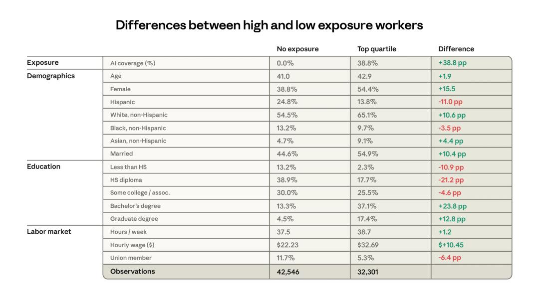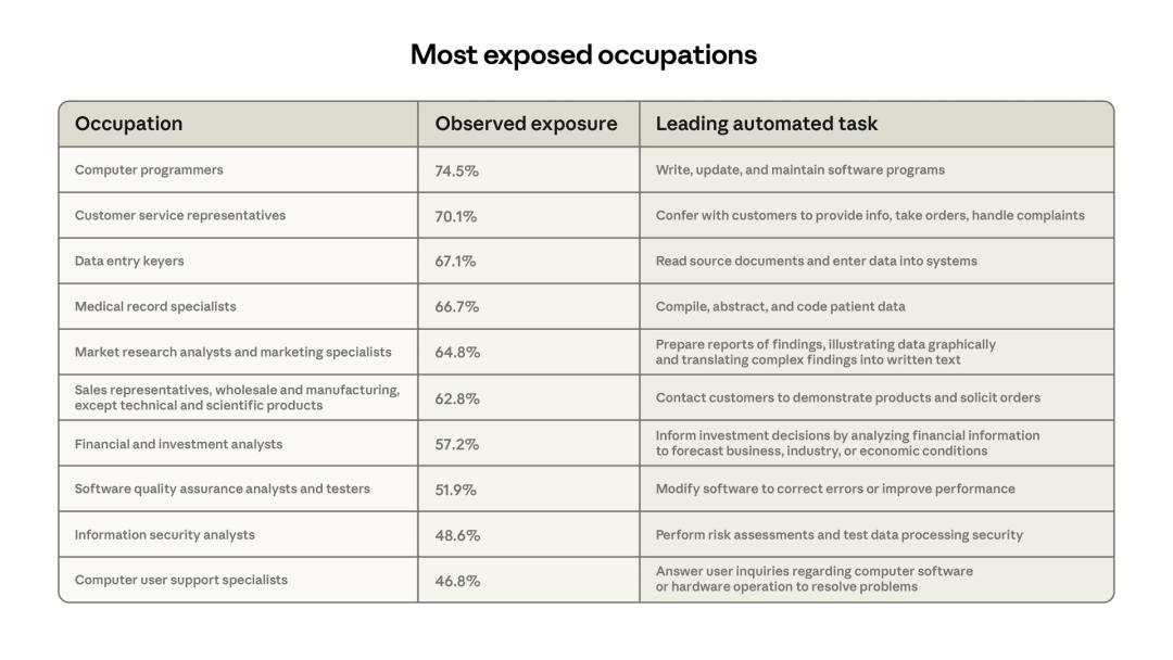Claude官方击穿高薪、高学历的安全防线,Anthropic点名10大高危职业,但有群人暂时稳了