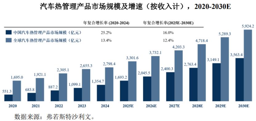 随着新能源汽车渗透率的提升,汽车热管理市场规模也持续扩大。2024年中国汽车热管理市场规模为1354.7亿元,预计到2030年将达到3563.4亿元。