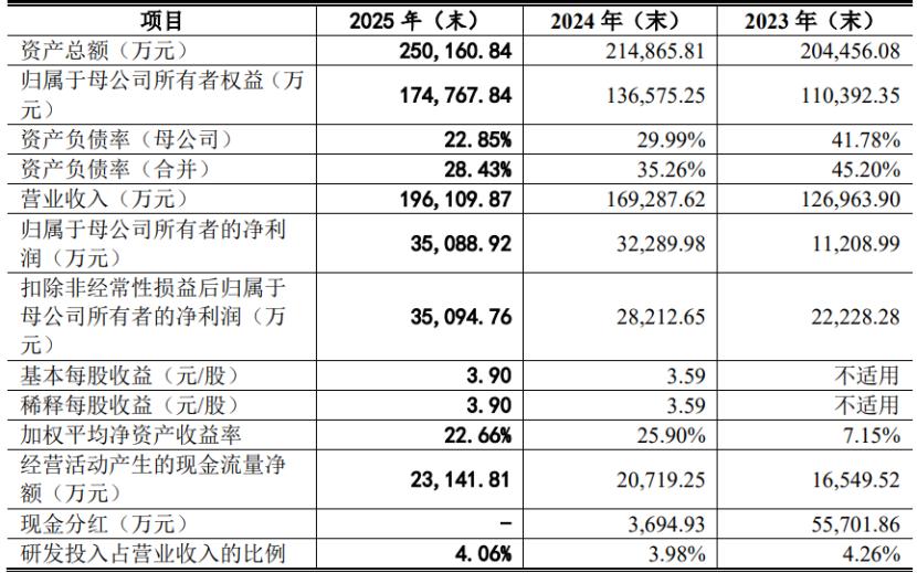 具体来看,2023年、2024年、2025年,天博智能的营业收入分别约12.7亿元、16.93亿元、19.61亿元,对应的归母净利润分别约1.12亿元、3.23亿元、3.51亿元。