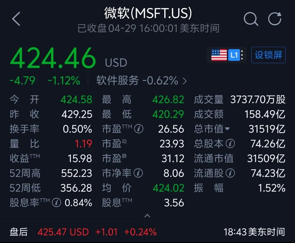 尽管业绩超出预期,微软在公布财报后的盘后交易中仍短时下跌3%,而后回调上涨0.24%。今年以来,微软的股价已下跌了12%。