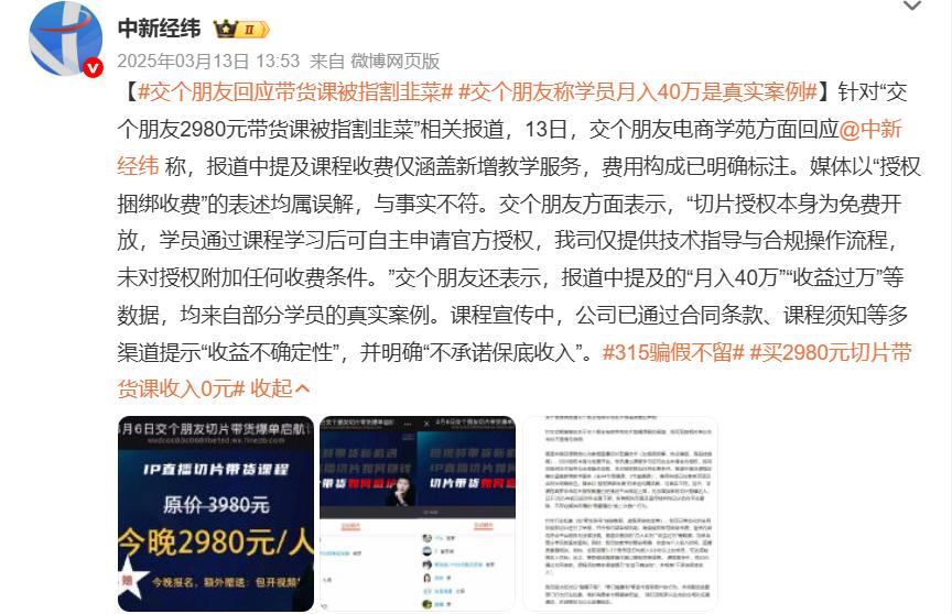 但交个朋友电商学苑的课程曾经却被质疑“割韭菜”,虽然交个朋友已经发布声明澄清,但“电商学苑”这条路注定难以一帆风顺。