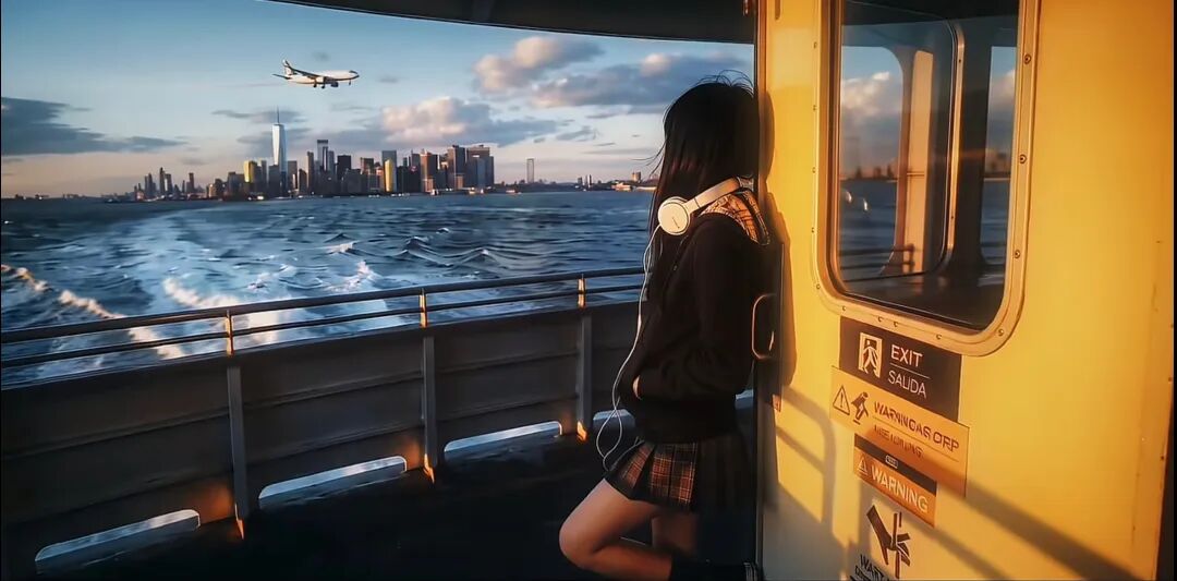 “女主”将BE美学发挥到了极致,用一滴泪的时间,从家中穿越到游轮,望着逐渐远离的飞机静静悲伤,营造出了一种氛围感。